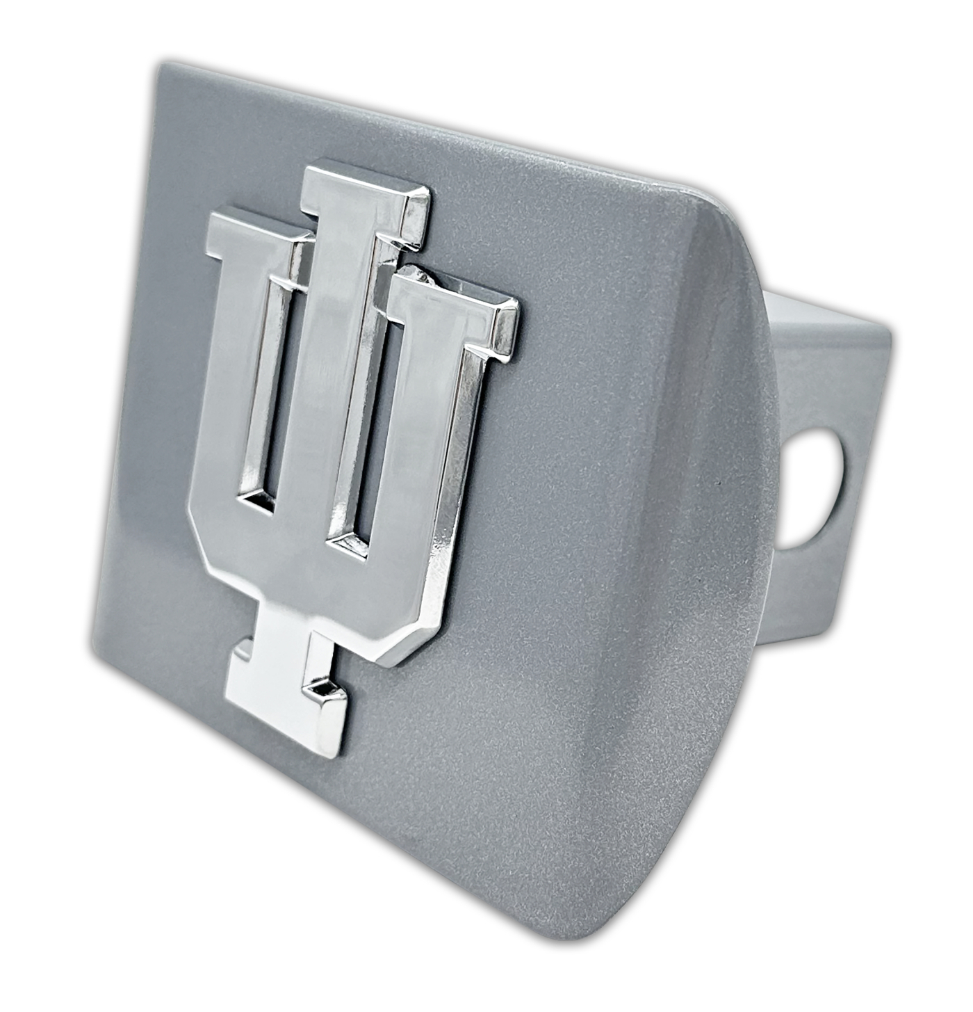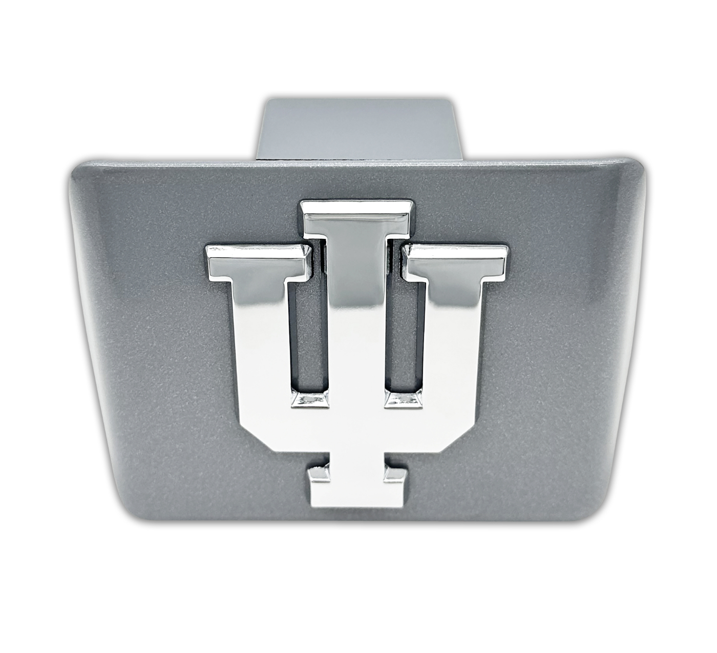 Indiana University Emblem on Matte Chrome Hitch Cover